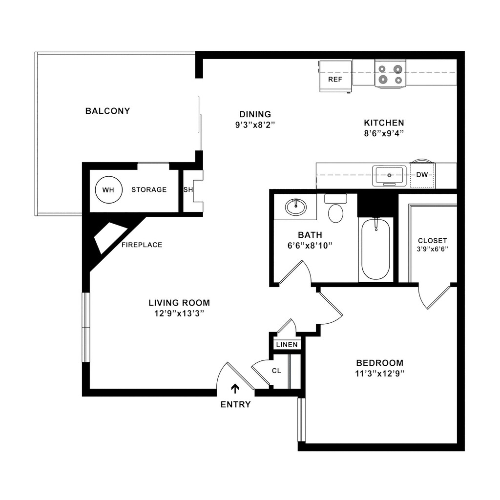 1 Bed 1 Bath - Floorplan 8 ![]()