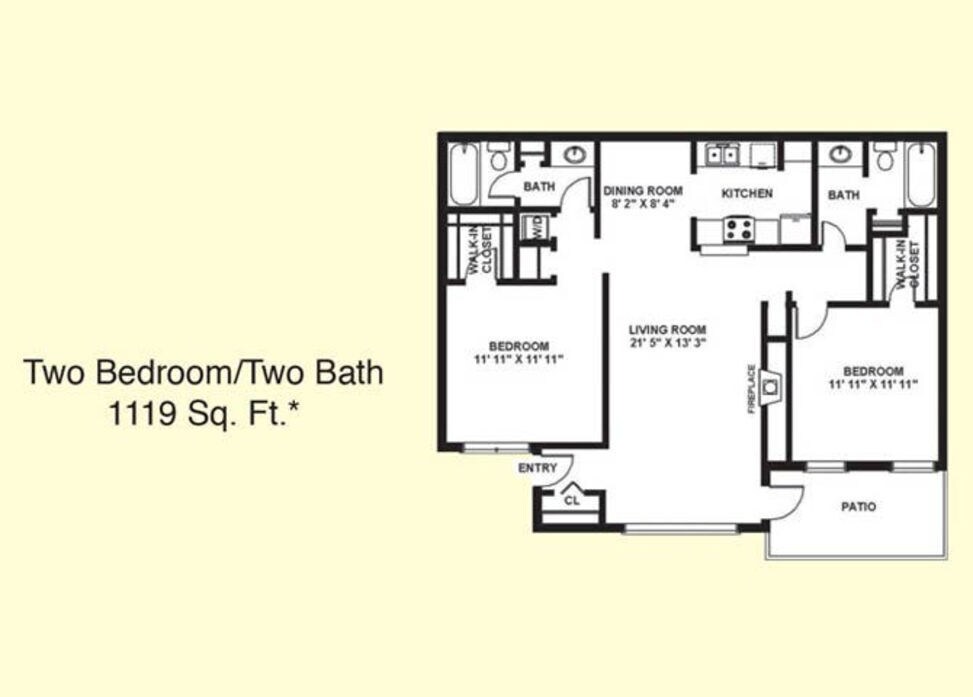 2 Beds, 2 Baths, 1119 sq ftLargest 2 BedroomThis is the largest 2 Bedroom at this PropertyModel Gallery