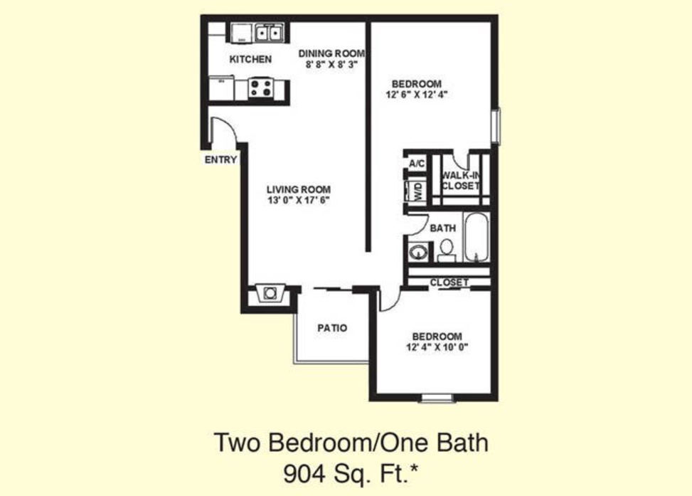 2 Beds, 1 Bath, 904 sq ftAvailable NowModel Gallery