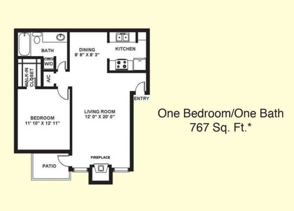 1 Bed, 1 Bath, 767 sq ftAvailable NowLargest 1 BedroomThis is the largest 1 Bedroom at this PropertyModel Gallery