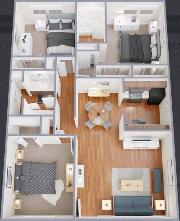Apartment Model: 3 Bedrooms, 2 Bathrooms$1,5503 Bedroom, 2 Bath, 1000 sq ftUnavailable![]()