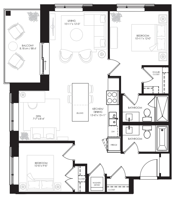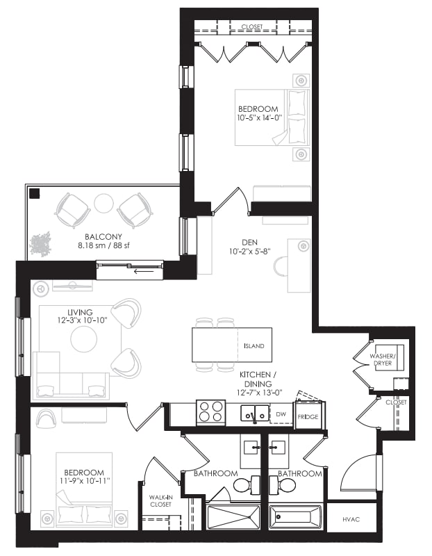 Show Unavailable FloorplansTwo Bedroom + Den