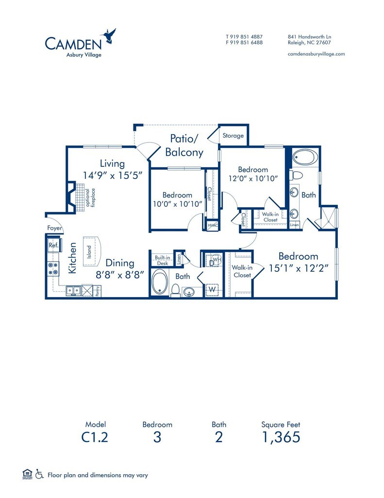 Camden offers a variety of shopping and tour options to find your new home - self-guided, live video, and team member tours available. Camden Asbury Village offers a sophisticated lifestyle that comes with personalized service, modern-day conveniences, and sought-after amenities. Our 1, 2, and 3 bedroom apartment homes were designed with upscale living in mind. From designer stainless steel appliances to built-in desks and bookshelves, our homes offer the custom features you deserve. Many of our floor plans also feature a built-in desk, making your new commute to work a breeze! Community amenities include an open-air cabana with outdoor fireplace next to our resort-style pool, 24-hour athletic center, and community workspace with Wi-Fi. Close to everything, Camden Asbury Village delivers the many conveniences of the PNC Arena, Rex Hospital, RDU airport, and the Research Triangle, and a serene backdrop of garden-style courtyards and tree-lined streets. Camden residents can take advantage of an exclusive discount with CORT to rent furniture and accessories for your apartment home. We partner with Vero, a third-party screening company, to verify the identity and income of all applicants. Pricing and availability are subject to change until a quote is saved. Call or visit to save a quote.