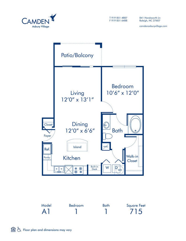 1 Bed, 1 Bath, 715 sq ftAvailability Details