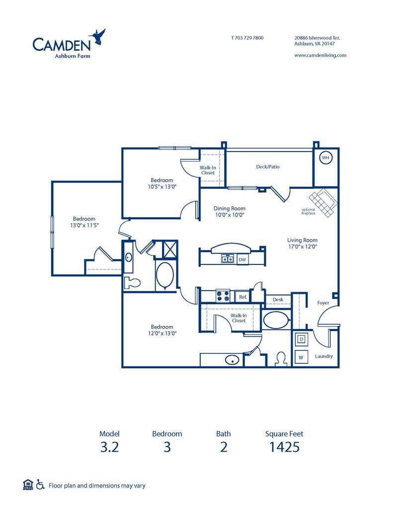 Apartment Model: 3.23 Bedroom, 2 Bath, 1425 sq ftUnavailable![]()
