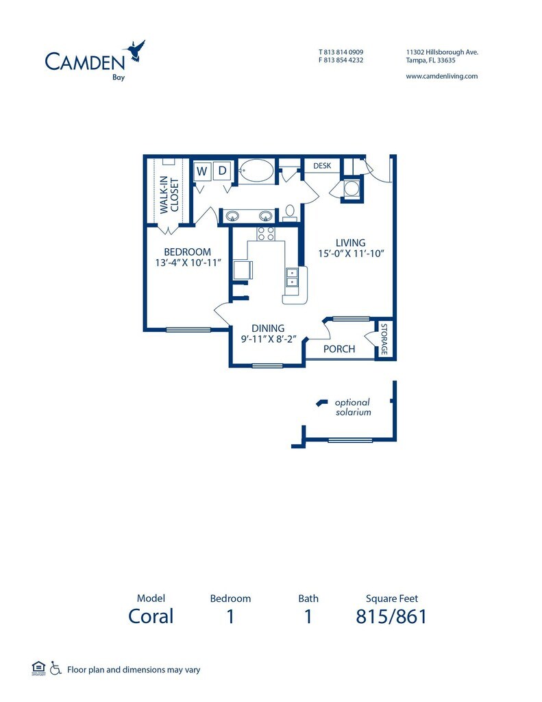 Apartment Model: Coral1 Bedroom, 1 Bath, 815-861 sq ftUnavailable![]()
