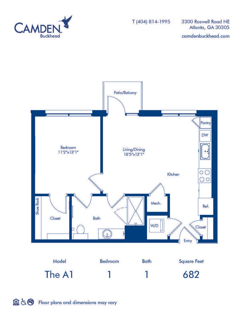 Apartment Model: The A11 Bedroom, 1 Bath, 682 sq ftUnavailable![]()