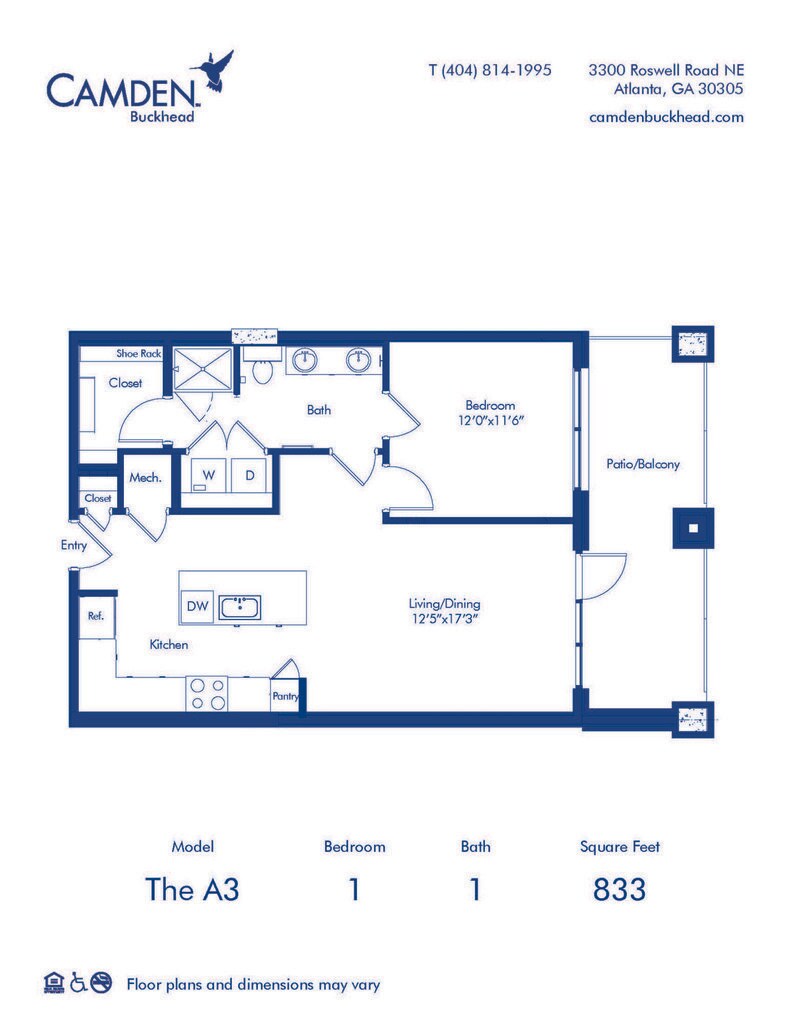 Apartment Model: The A31 Bedroom, 1 Bath, 833 sq ftUnavailable![]()