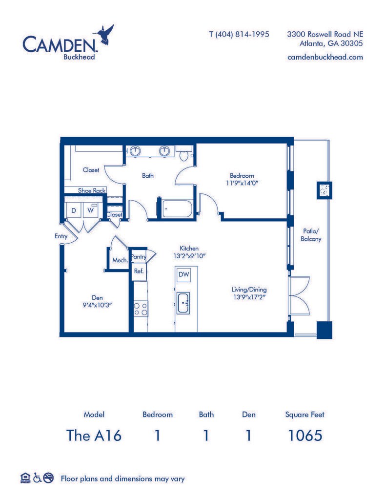 Apartment Model: The A161 Bedroom, 1 Bath, 1065 sq ftUnavailable![]()