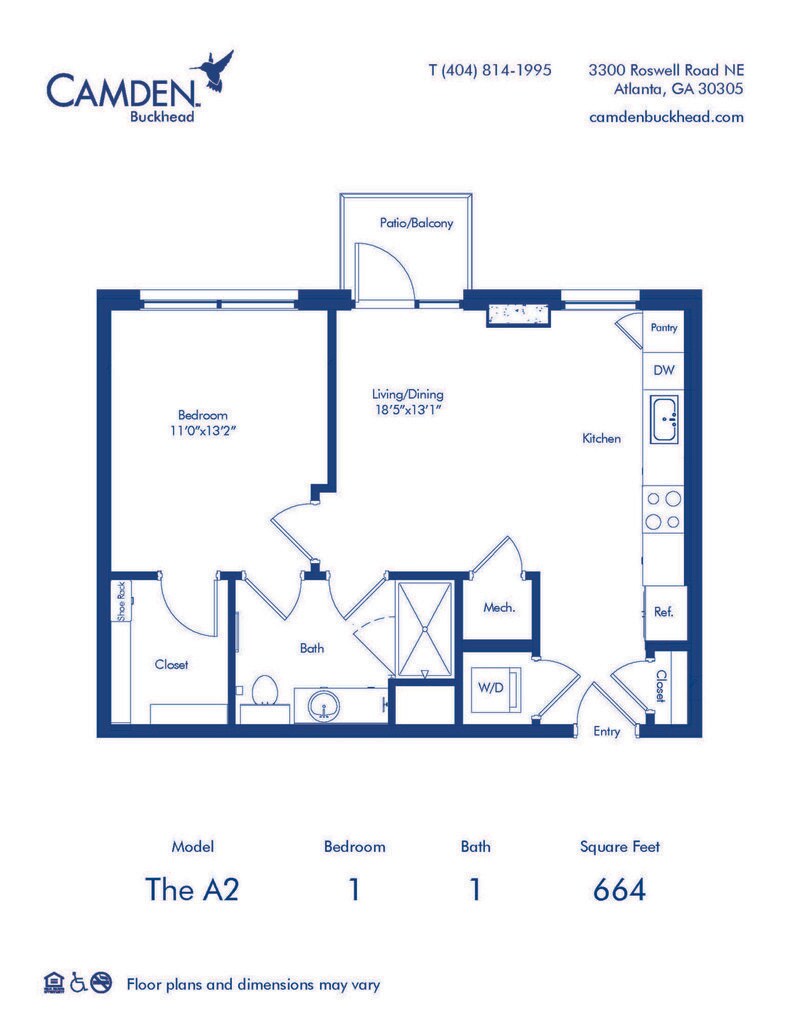 Apartment Model: The A21 Bedroom, 1 Bath, 664 sq ftUnavailable![]()