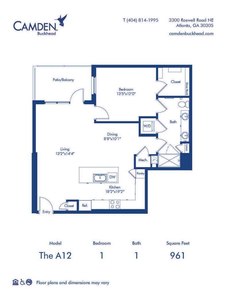 Apartment Model: The A121 Bedroom, 1 Bath, 961 sq ftUnavailable![]()