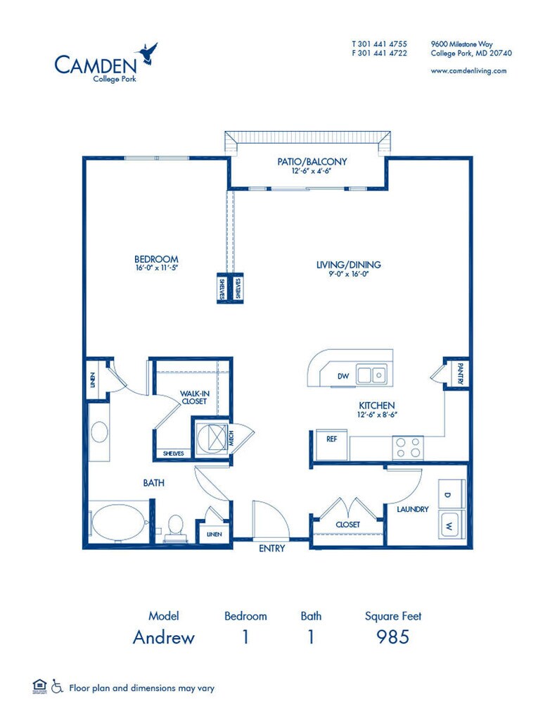 Apartment Model: Andrew1 Bedroom, 1 Bath, 985 sq ftUnavailableAndrew - Floorplan 1 Linwood