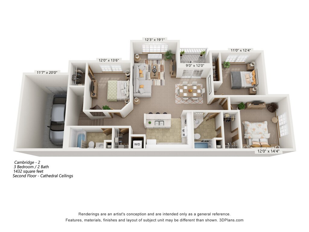 Apartment Model: Cambridge 23 Bedroom, 2 Bath, 1432 sq ftUnavailable![]()