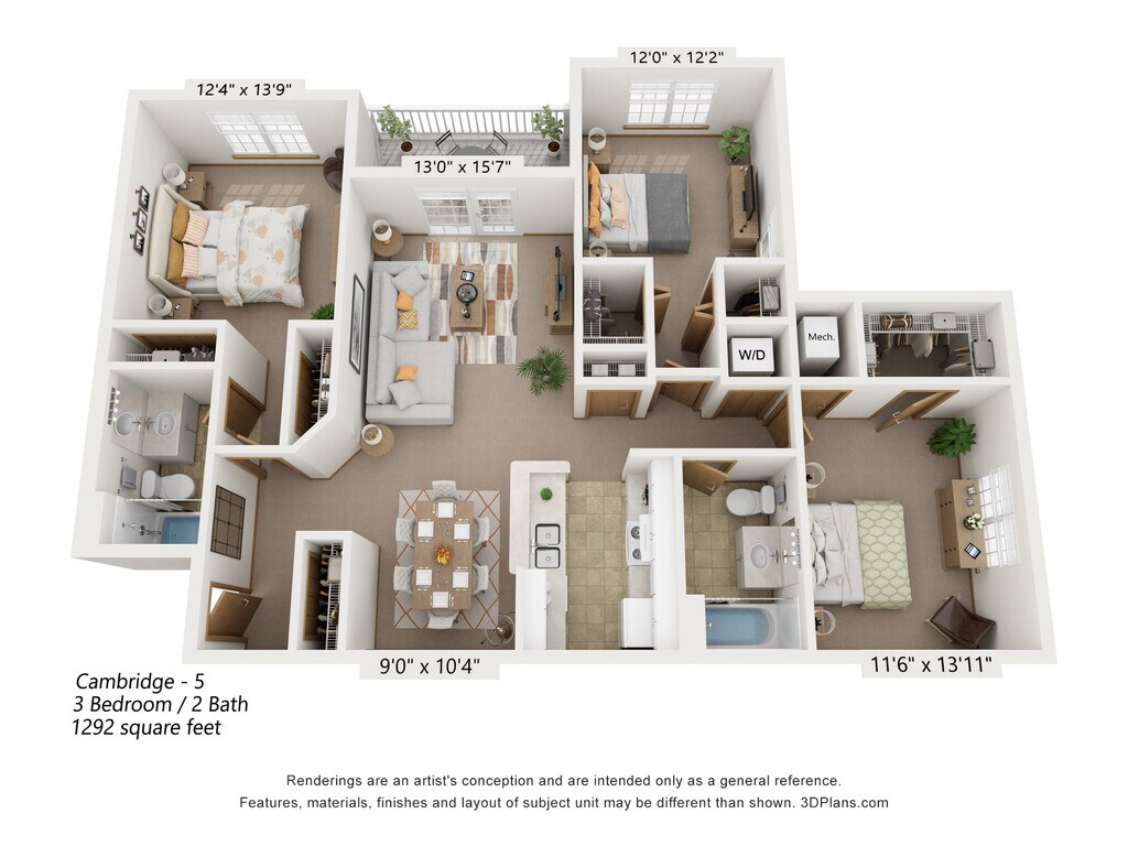 Apartment Model: Cambridge 53 Bedroom, 2 Bath, 1140 sq ftUnavailable![]()