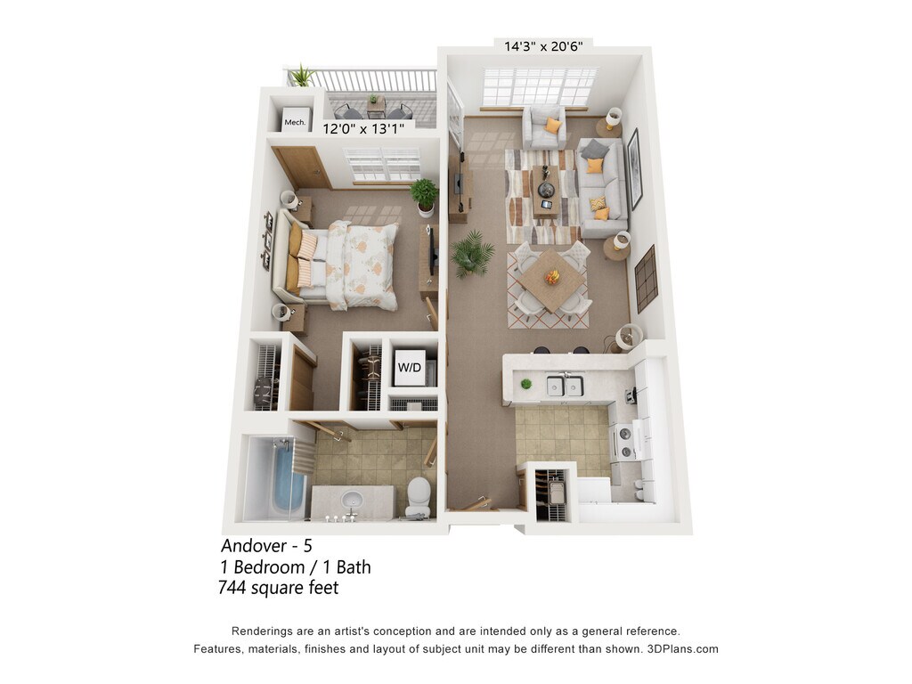 Apartment Model: Andover 51 Bedroom, 1 Bath, 744 sq ftUnavailable![]()