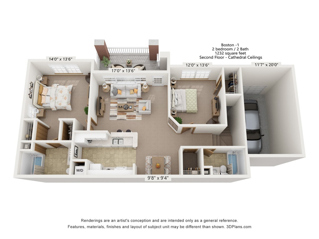 2 Beds, 2 Baths, 1232 sq ftLargest 2 BedroomThis is the largest 2 Bedroom at this PropertyModel Gallery