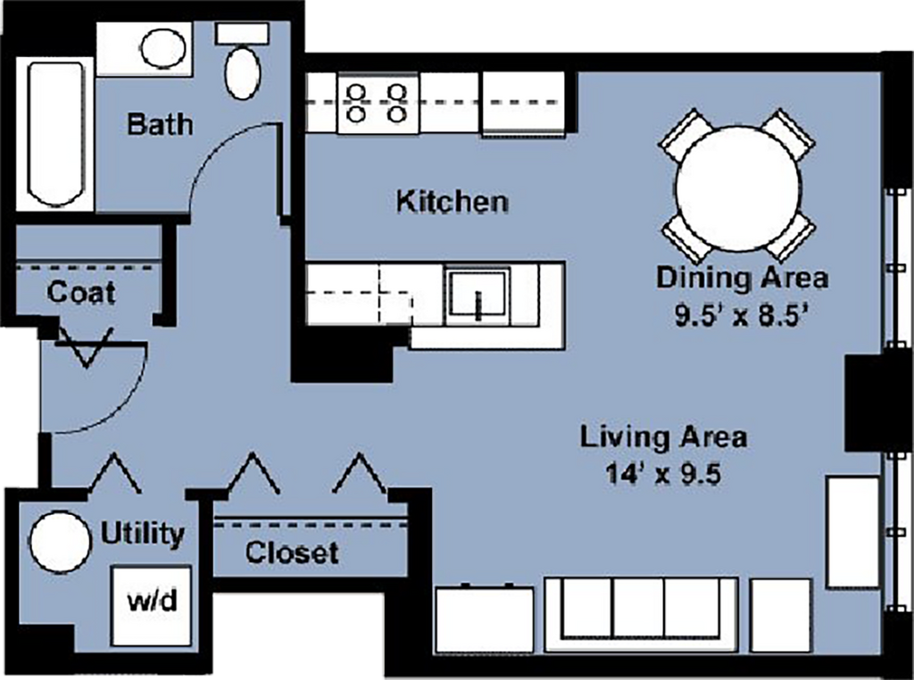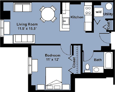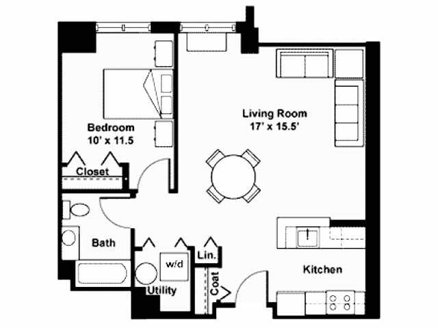 Small 1 Bedroom - Floorplan 1 1 Bedroom 1 Bath Furnished