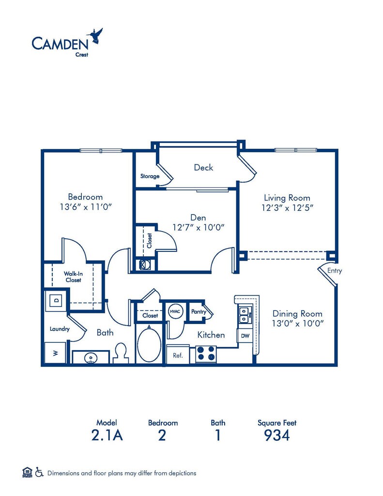 Apartment Model: 2.11 Bedroom, 1 Bath, 934 sq ftUnavailable![]()