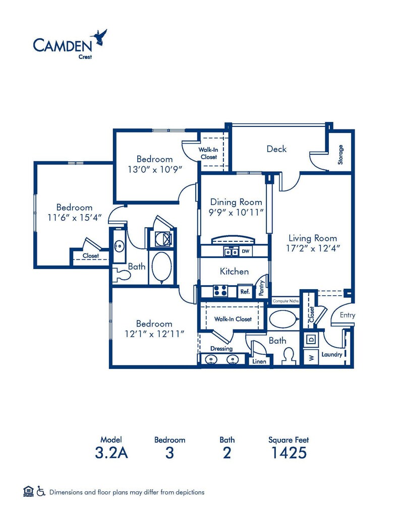 Apartment Model: 3.23 Bedroom, 2 Bath, 1425 sq ftUnavailable![]()