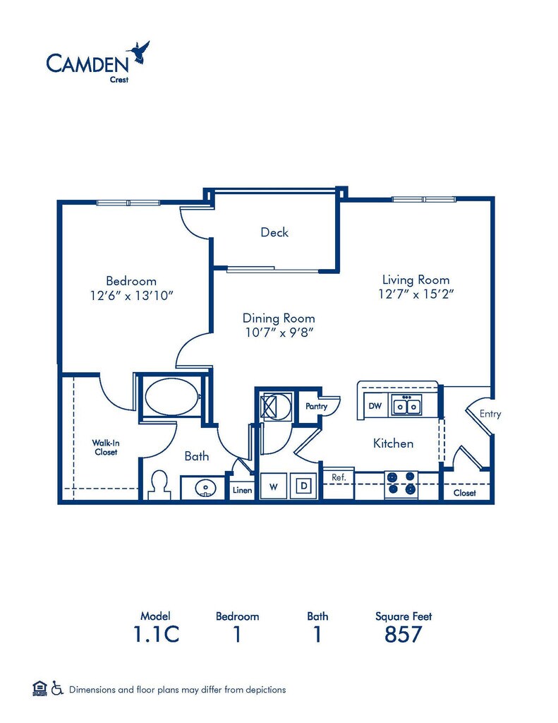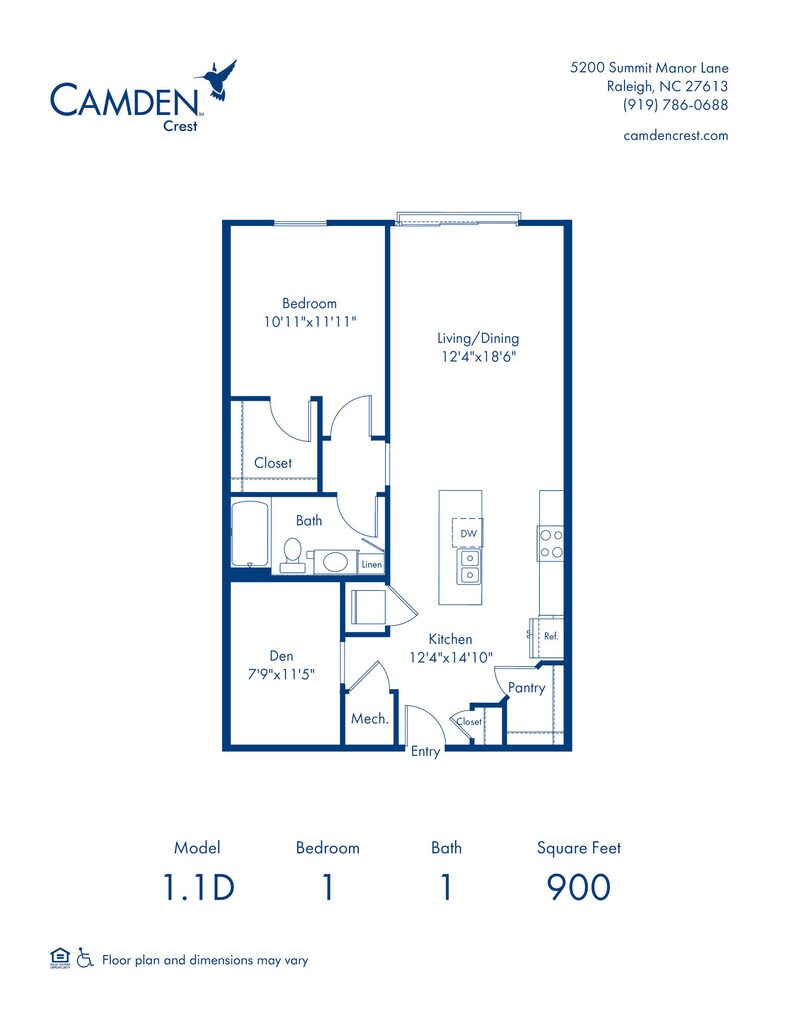 Camden offers a variety of shopping and tour options - self-guided, live video, and team member tours available. Camden Crest offers newly renovated 1, 2, and 3-bedroom apartment homes perfectly located in Raleigh off Glenwood Avenue with easy access to the Triangle's best shopping, dining, and entertainment destinations like Glenwood South, Walnut Creek Amphitheater, and PNC Arena. Our non-smoking apartments have 9-foot ceilings with crown molding, garden bathtubs, private patios and balconies with storage, and full-size washers and dryers. Modern design apartments feature glacier white cabinets, quartz countertops, arctic white tile backsplash, and stainless steel appliances. Contemporary design homes have granite countertops, stainless steel appliances, plank floors, and sound-minimizing technology, located in a pet-free building. The community offers a variety of amenities too! After breaking a sweat in the expansive fitness center, unwind at one of the two resort-style swimming pools with poolside charcoal grills. The pet-friendly community also features a pet park so your pup can mingle with other dogs, a car care and maintenance center, and doorstep trash pickup. Camden Crest's location places you minutes from Research Triangle Park, RDU Airport, Raleigh Grand movie theater, and Lake Lynn park. Crabtree Valley Mall and Brier Creek Commons are also only a short drive away. Stop looking and start living at Camden Crest! We partner with Vero, a third-party screening company, to verify the identity and income of all applicants. As an Airbnb-friendly community, residents can host their apartment home on Airbnb part-time, up to 90 days per year. (Hosting is subject to local laws and regulations.) Camden residents can take advantage of an exclusive discount with CORT to rent furniture and accessories for your apartment home. Pricing and availability are subject to change until a quote is saved. Call or visit to save a quote.