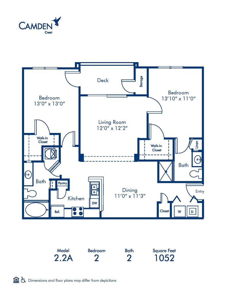 Apartment Model: 2.2A2 Bedroom, 2 Bath, 1052 sq ftUnavailable![]()
