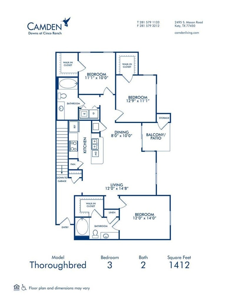 Apartment Model: Thoroughbred3 Bedroom, 2 Bath, 1412 sq ftUnavailable![]()