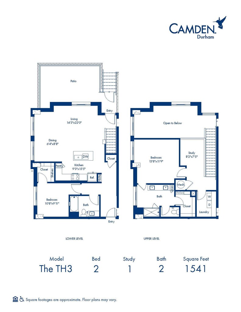 Camden Durham offers Studio to 2 Bedroom apartments starting from $1,509 and having 633–1,541 sq ft. Here is the current pricing and availability: