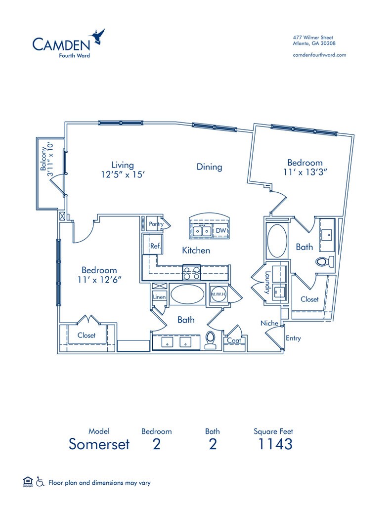 Apartment Model: Somerset2 Bedroom, 2 Bath, 1143 sq ftUnavailableSomerset - Floorplan 1 Willoughby