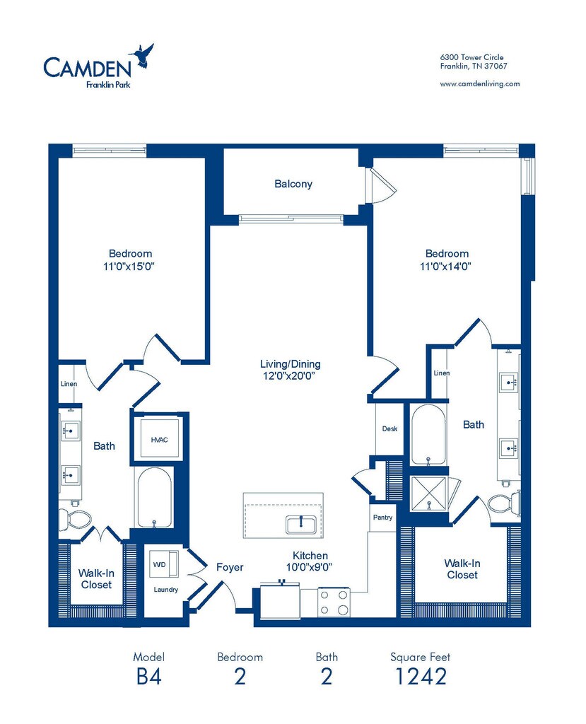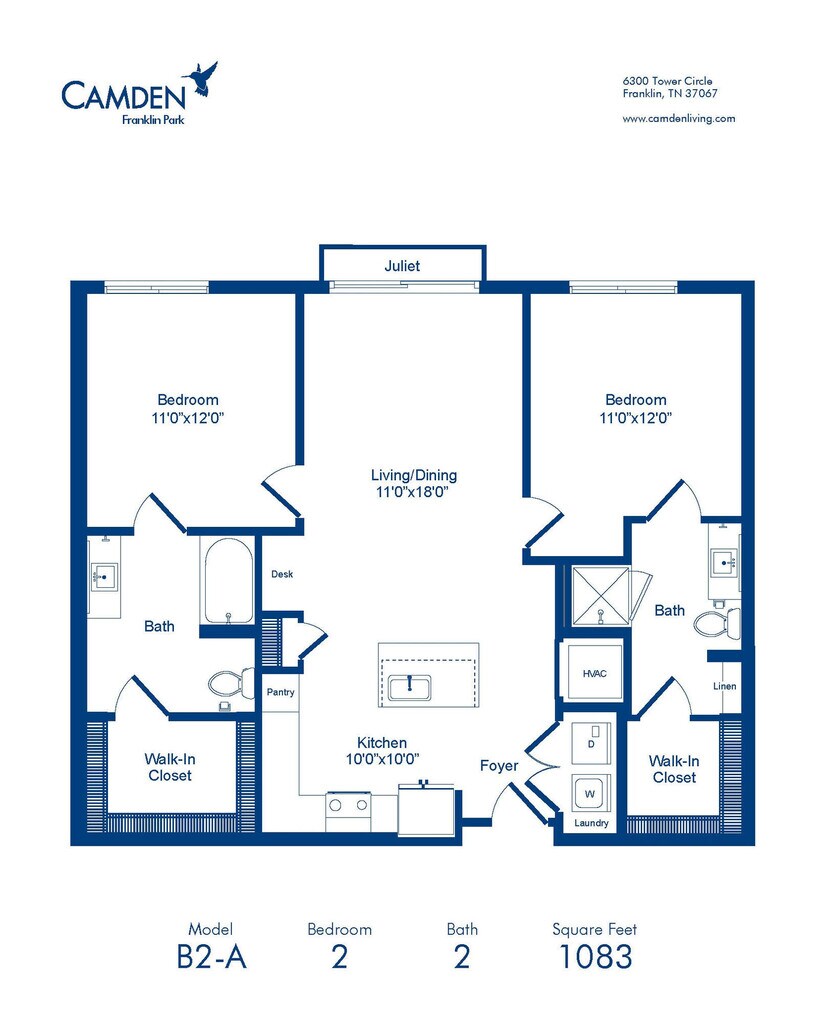 We offer self-guided, live video, and team member tour options. Please call 24 x 7 to schedule. Camden Franklin Park features modern one, two, and three-bedroom apartment homes in the heart of Franklin. Surrounded by both green space and a growing business park, Camden Franklin Park apartments are right where you want to be. Just a quick drive from our apartments in Franklin, enjoy trendy restaurants and endless shopping options in Thoroughbred Village or Cool Springs Galleria. Head over to nearby coffee shop, Honest Coffee Roasters, explore Historic Downtown Franklin, or catch some local live music at Gray's on Main or one of the many "back porch" venues around Franklin and Williamson County. Conveniently located off I-65, Camden Franklin Park apartments are only a 20-minute drive to Nashville if you’re commuting. Get some fresh air and take in Franklin’s natural beauty at nearby Liberty Park and Marcella Vivrette Smith Park or explore the 3+ miles of walking trails and boardwalks just across the street in Franklin Park. Camden residents can take advantage of an exclusive discount with CORT to rent furniture and accessories for your apartment home. Pricing and availability are subject to change until a quote is saved. Call or visit to save a quote.