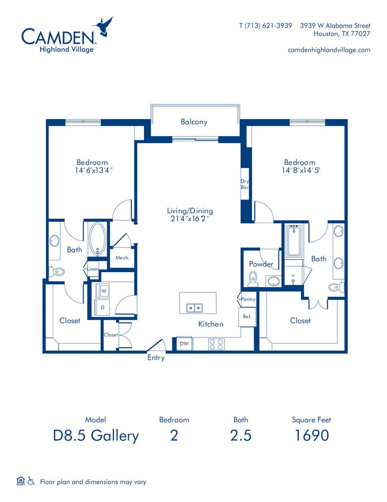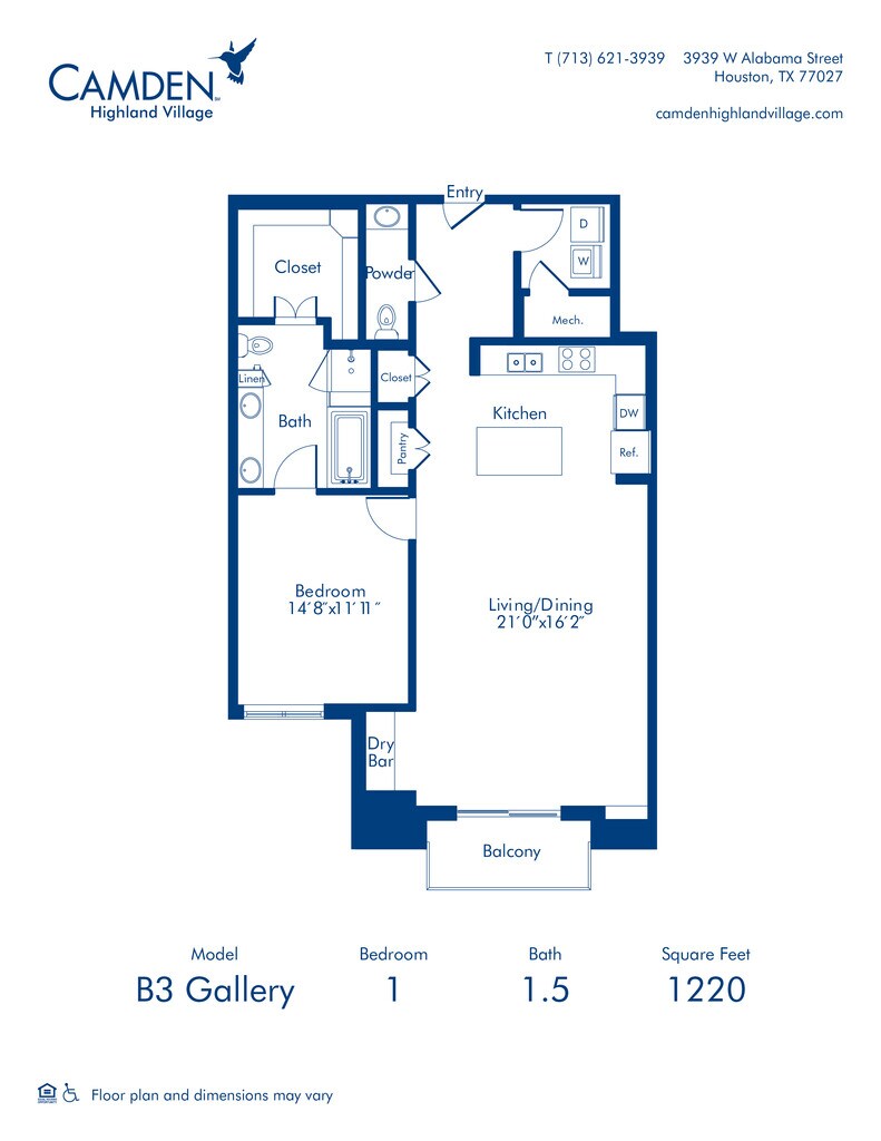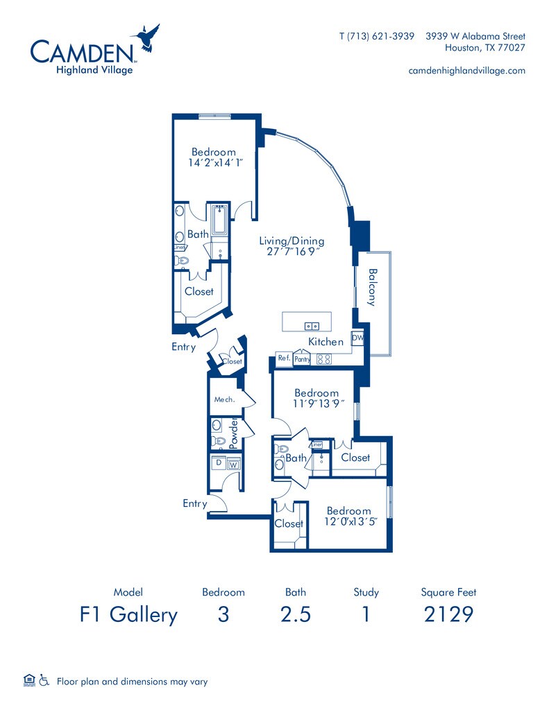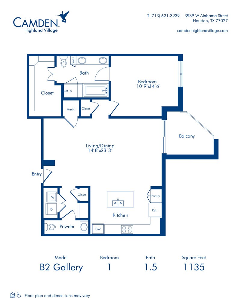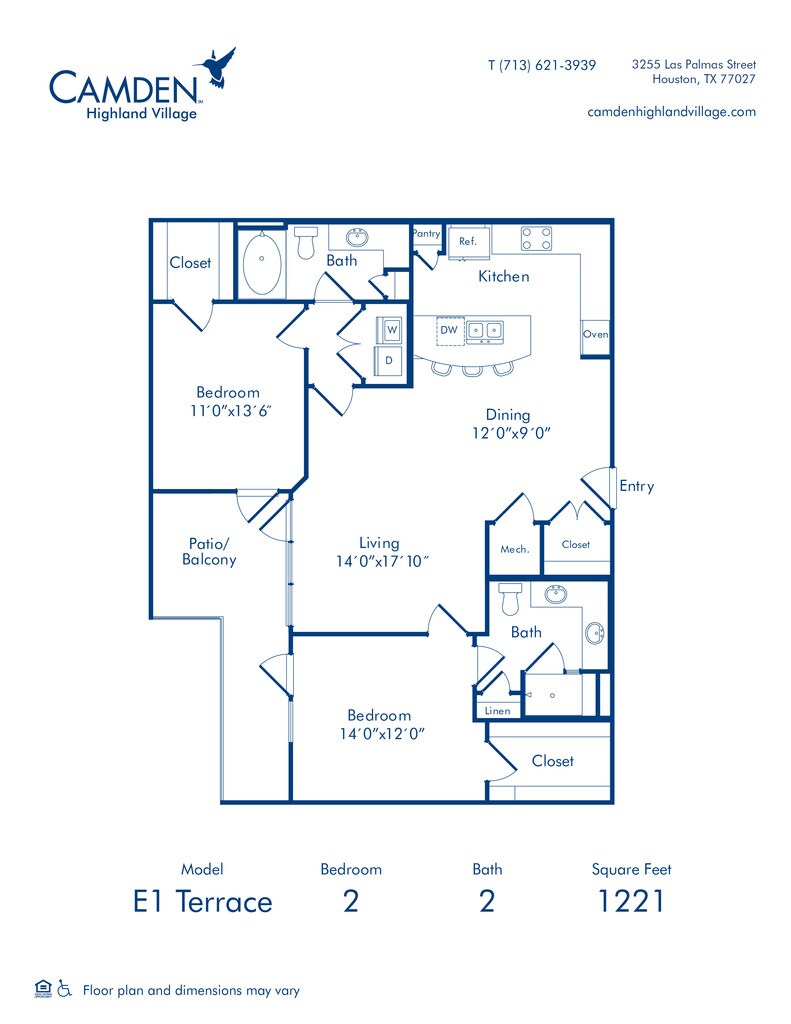 We offer live video, self-guided, and team member tour options. Please call 24 x 7 to schedule. Camden Highland Village Uptown apartments feature one, two and three bedroom apartments or three bedroom townhomes near River Oaks. Experience three unique living choices with The Gallery, The Terrace, and The Townhomes, featuring stainless steel appliances, quartz countertops, walk-in closets, and a private patio or balcony in an access-controlled building. Need a space to conveniently work from home? Explore our Gallery C1 and C2 and Terrace C1, C2 C3 and C4 floor plans, each equipped with a built-in desk to allow you to effortlessly work from home anytime! You'll want to take advantage of our resort-style amenities too. You can take a dip in one of our resort-style pools, break a sweat in our 24x7 fitness centers, or relax with your friends in our salon or spa. Our pet-friendly Afton Oaks apartments and townhomes are located in the popular Highland Village neighborhood where you can live, work, and play. High-end shopping, renowned restaurants, and fresh food markets are right outside your door. Whether you are enjoying your spacious apartment or townhome, loving the location or taking advantage of our state-of-the-art amenities you will experience living at its finest. Come home to Camden Highland Village where there is something for everyone to enjoy! Camden residents can take advantage of an exclusive discount with CORT to rent furniture and accessories for your apartment home. We partner with Vero, a third-party screening company, to verify the identity and income of all applicants. Pricing and availability are subject to change until a quote is saved. Call or visit to save a quote.