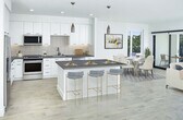 - 7.5" wide oak plank flooring in kitchen and living