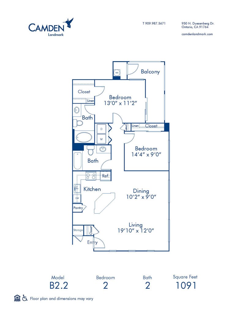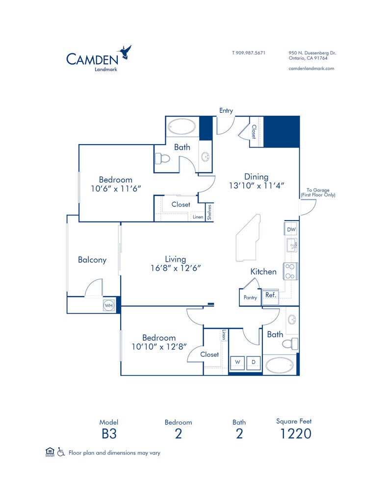 2 Beds, 2 Baths, 1220 sq ftLargest 2 BedroomThis is the largest 2 Bedroom at this PropertyModel Gallery