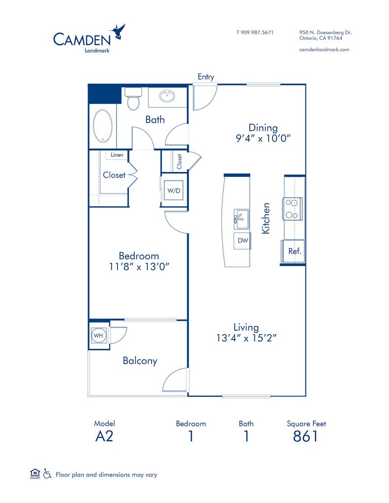 Camden offers a variety of shopping and tour options to find your new home - self-guided, live video, and team member tours available. Call 24 x 7 to schedule. Live at Camden Landmark and call one of Southern California's most coveted neighborhoods in Ontario home. Our newly renovated, modern one and two bedroom luxury apartment homes feature 9' ceilings framed with crown molding, garden bathtubs, double-paned energy efficient windows, a full-size washer and dryer, walk-in closets with custom wooden shelving, and private patios or balconies. These contemporary apartment homes include stainless steel appliances, white quartz countertops, white subway tile backsplash, and greige cabinetry with brushed nickel fixtures. Working from home? Our A4.2, A4, and B2.2.2 floor plans feature built-in desks! Carports and garages are available to protect your vehicle from the California sun. Enjoy working out in the expansive fitness center, weekends by the resort-style swimming pool and hot tub, afternoons on the putting green, and the best view of the San Bernardino mountains by the outdoor fireplace. Life at Camden Landmark means your pets are family too; we accept two pets per apartment home with no weight limit. Just blocks away from entertainment hubs Top Golf, the Toyota Arena, Ontario Mills Mall, and with quick access to the 15 and 10 freeways and Ontario International Airport, you are won't have to go far frome home to find what you are looking for. Extra perks include a 10-minute walk to the MetroLink for an easy LA County commute, WiFi in all the common areas, assigned garages and carports, recycling bins throughout the community. Camden residents can take advantage of an exclusive discount with CORT to rent furniture and accessories for your apartment home. Pricing and availability are subject to change until a quote is saved. Call or visit to save a quote.