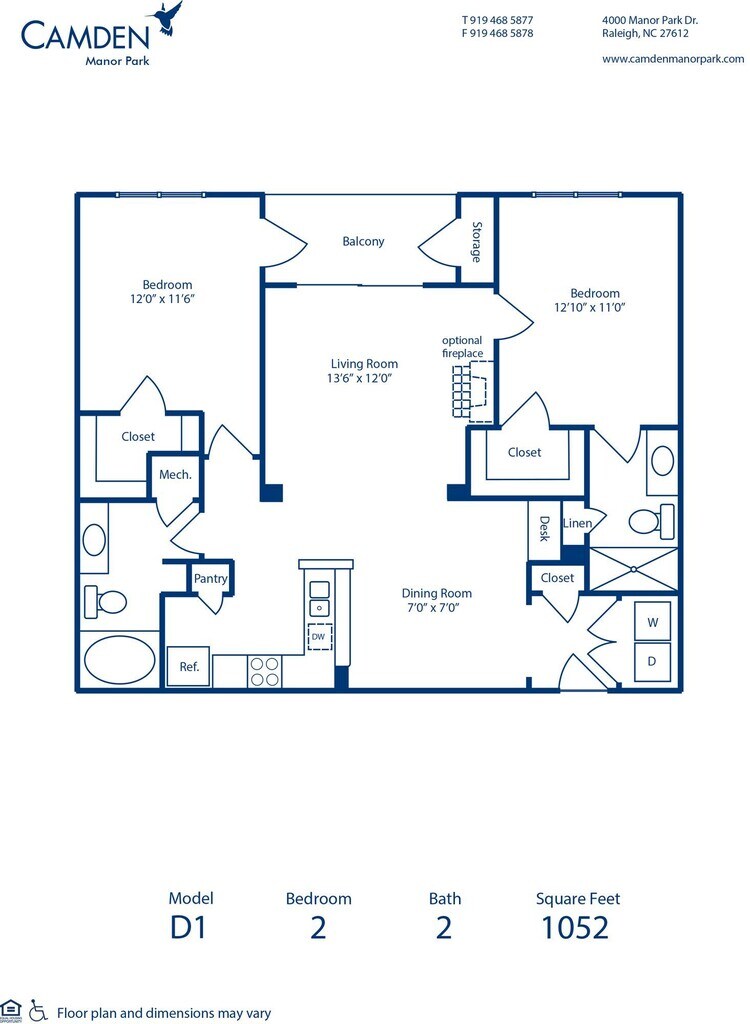 Apartment Model: D12 Bedroom, 2 Bath, 1052 sq ftUnavailable![]()