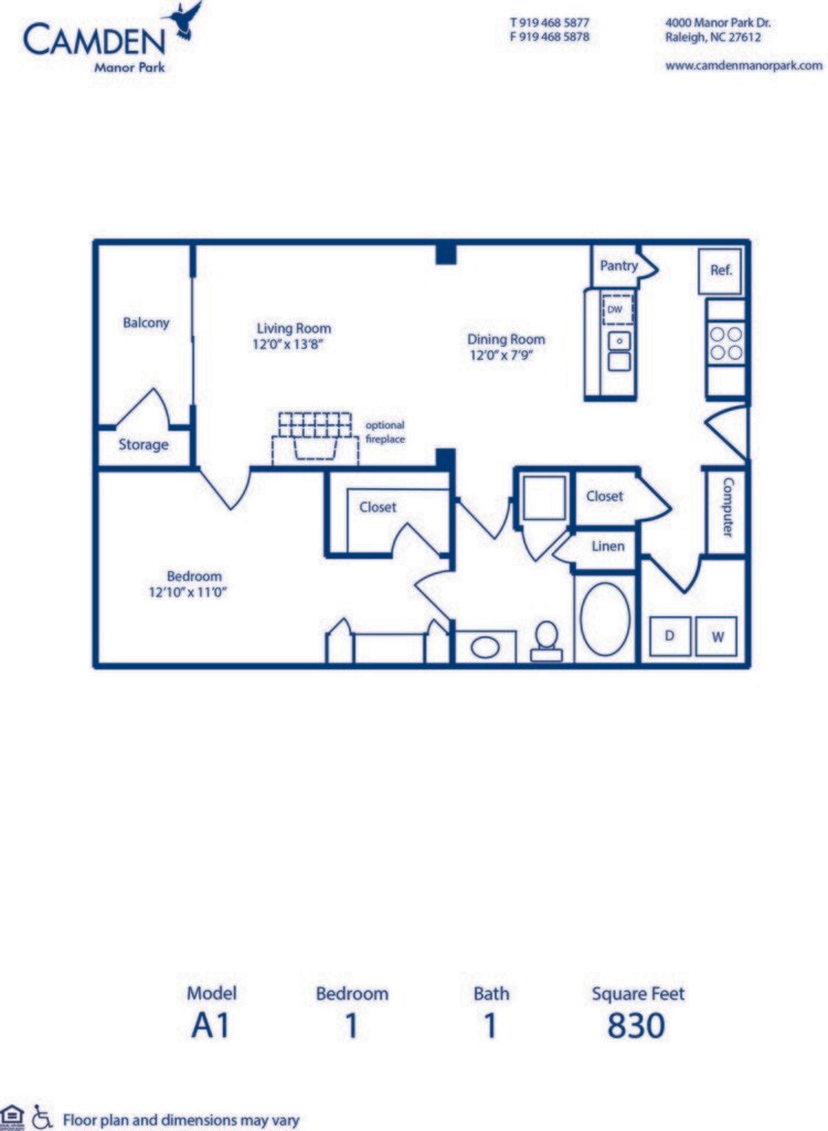 1 Bed, 1 Bath, 830 sq ftAvailability Details