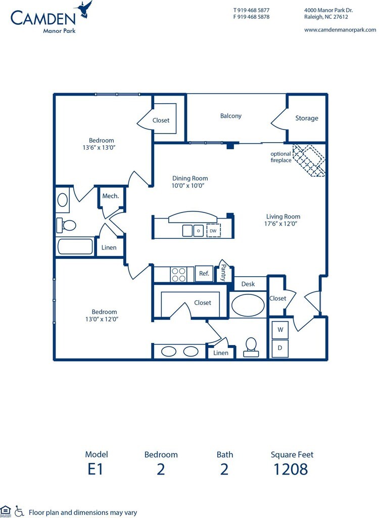 Apartment Model: E12 Bedroom, 2 Bath, 1208 sq ftUnavailable![]()