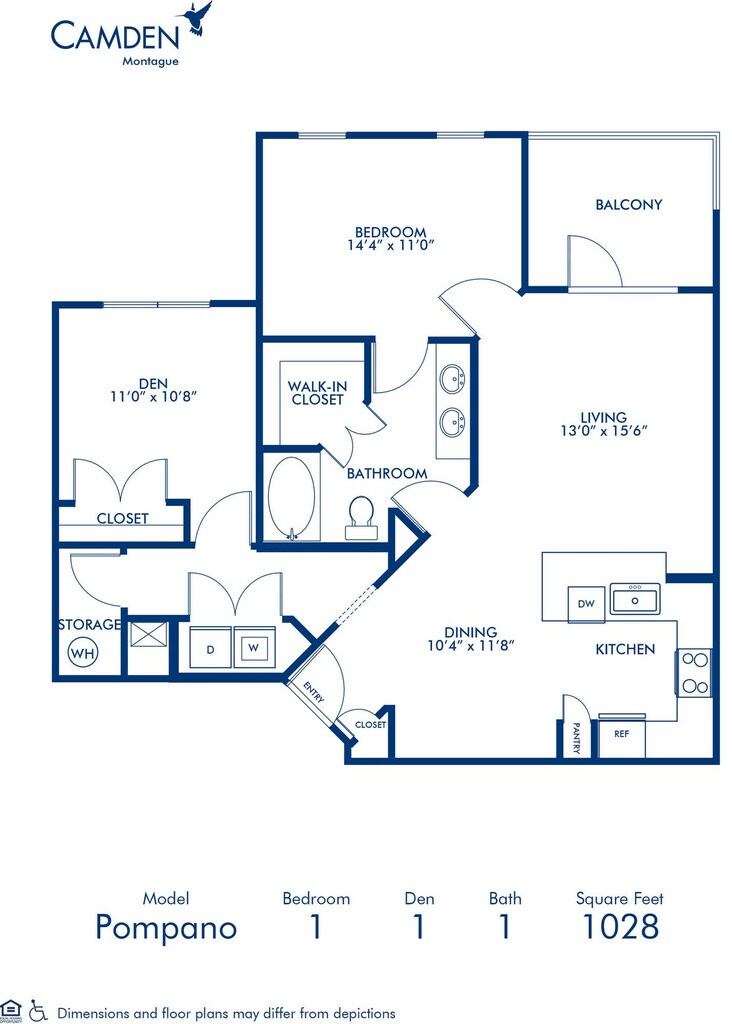 Apartment Model: Pompano1 Bedroom, 1 Bath, 1028 sq ftUnavailablePompano - Floorplan 1 Biscayne