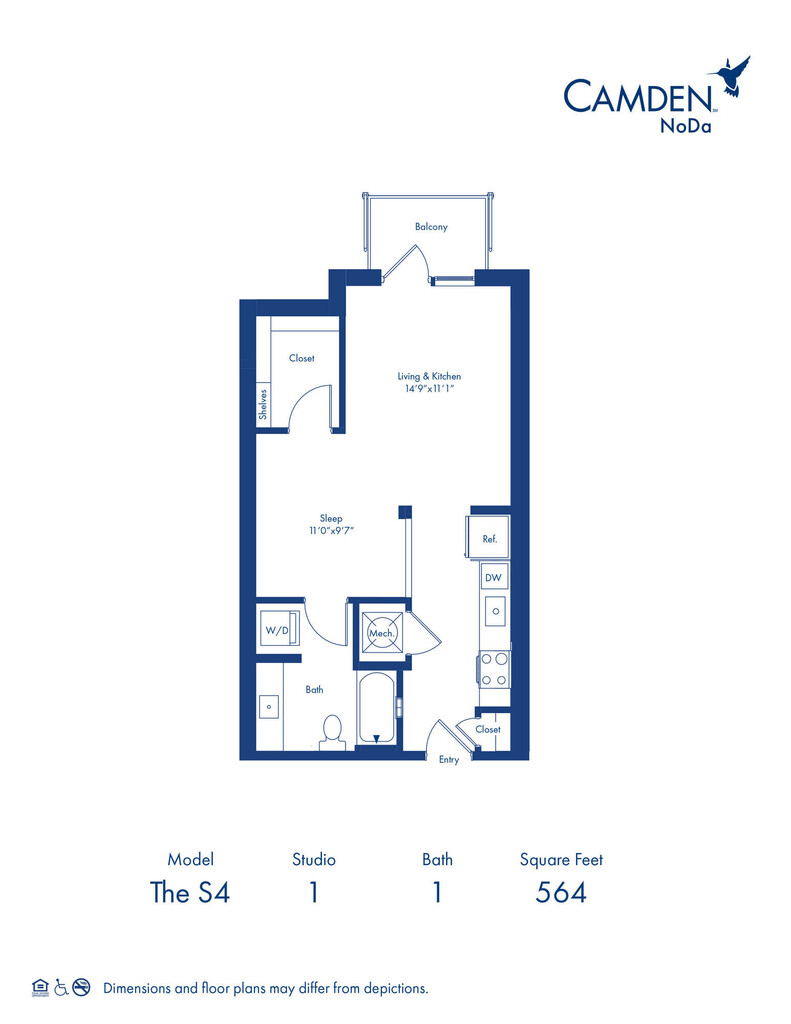 Apartment Model: S4Studio, 1 Bath, 564 sq ftUnavailable![]()