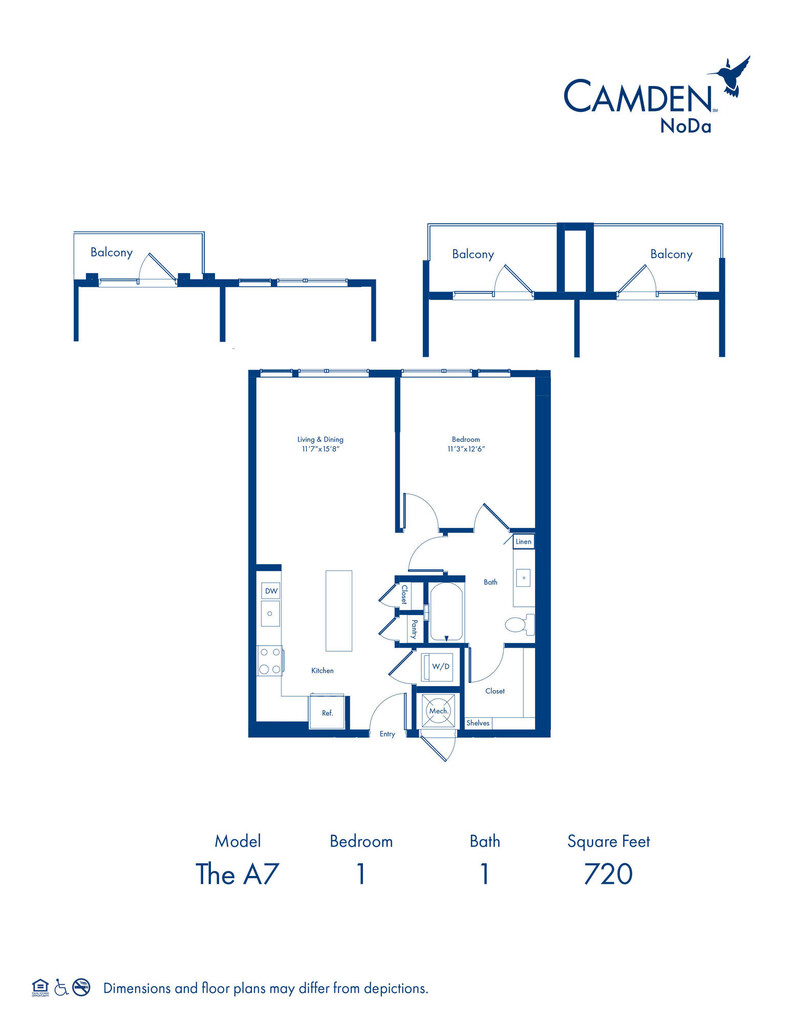 1 Bed, 1 Bath, 747 sq ftModel Gallery
