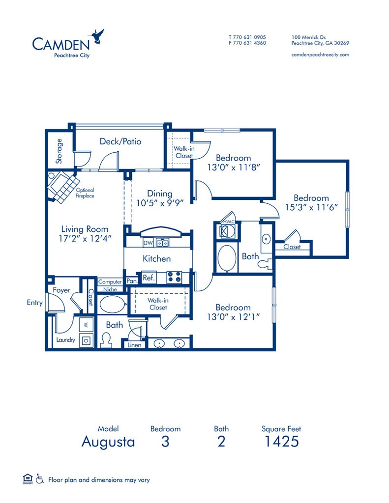 Apartment Model: Augusta3 Bedroom, 2 Bath, 1425 sq ftUnavailableAugusta - Floorplan 1