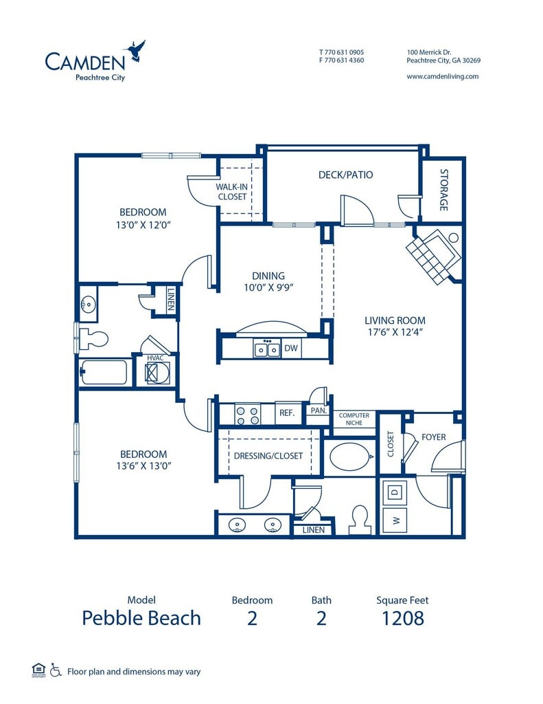 Apartment Model: Pebble Beach2 Bedroom, 2 Bath, 1208 sq ftUnavailablePebble Beach - Floorplan 1 3 Bedrooms