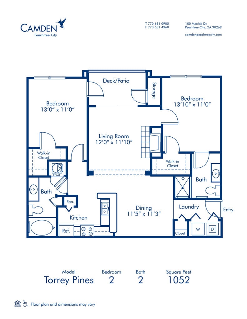 Apartment Model: Torrey Pines2 Bedroom, 2 Bath, 1052 sq ftUnavailableTorrey Pines - Floorplan 1 Pebble Beach