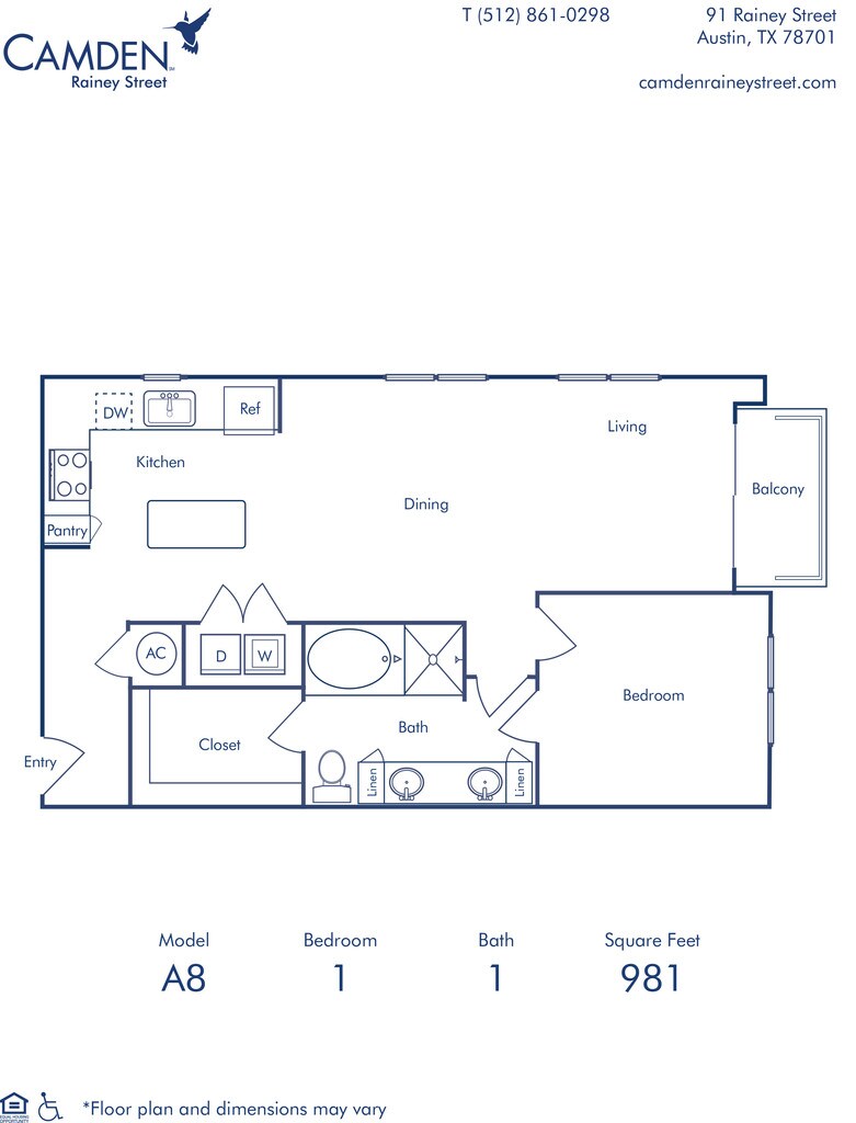 Receive up to one month FREE. Limited time only! Restrictions apply. Call for details. We offer self-guided, live video, and team member tours. Call 24 x 7 to schedule! Ask us about our rent specials. Camden Rainey Street offers high-end, luxury living in the heart of Austin’s most trendy neighborhood. Located off I-35 right on Rainey Street, our studio, one, and two-bedroom apartment homes offer spacious layouts and include top-of-the-line amenities. Your home features ENERGY STAR stainless steel appliances, modern kitchens, walk-in closets, Nest programmable thermostats, and so much more! Select apartment homes feature space to work from home, a private balcony, floor-to-ceiling- windows, double-sink vanities, and glass-enclosed showers. Our community features smart-access gates and door locks so residents can move throughout the building and into their homes using a smartphone. Break a sweat at our 24-hour fitness center with great views of Downtown Austin, relax in our spacious resident lounge, or get work done in our community workspace or private conference room. Hang out outdoors in our Backyard with grills, plenty of seating, and lawn games. We are pet-friendly, welcoming up to 3 pets per home, and we have an onsite, gated dog park. Conveniently charge your EV in the gated parking garage. Feel good about your apartment’s environmental impact – our building is Green Label Gold LEED Certified. Camden Rainey Street participates in the Austin S.M.A.R.T. program so please call us for more information! Convenience and fun are right outside your door with Anthem restaurant downstairs or plenty of nightlife and entertainment just down the block. Come by today and experience the difference at Camden Rainey Street. Camden residents can take advantage of an exclusive discount with CORT to rent furniture and accessories for your apartment home. Pricing and availability are subject to change until a quote is saved. Call or visit to save a quote.