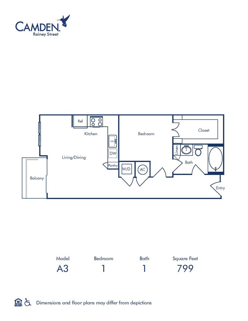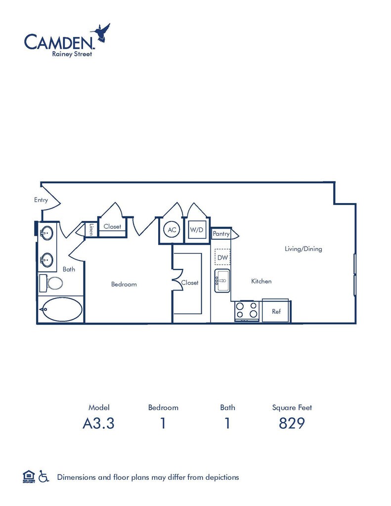Apartment Model: A3.31 Bedroom, 1 Bath, 829 sq ftUnavailable![]()