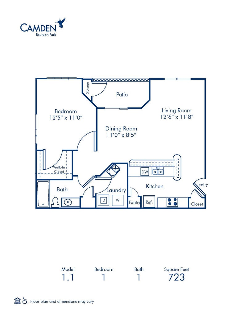 1 Bed, 1 Bath, 723 sq ftModel Gallery