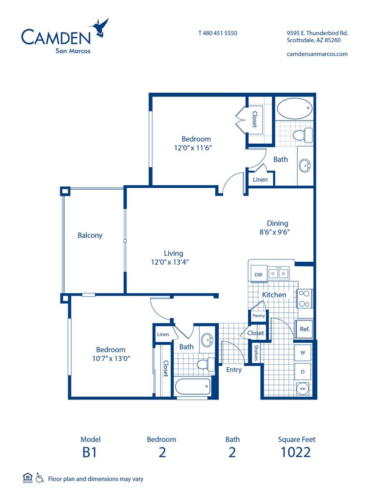 2 Beds, 2 Baths, 1022 sq ftModel Gallery