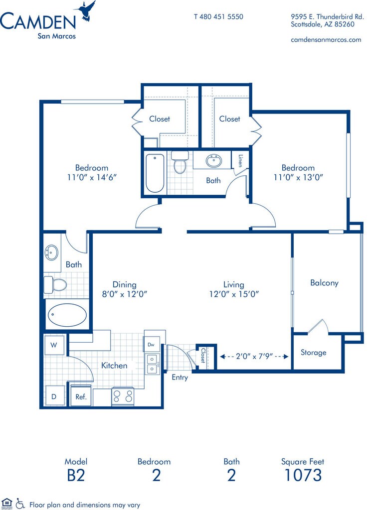 2 Beds, 2 Baths, 1073 sq ftLargest 2 BedroomThis is the largest 2 Bedroom at this PropertyModel Gallery