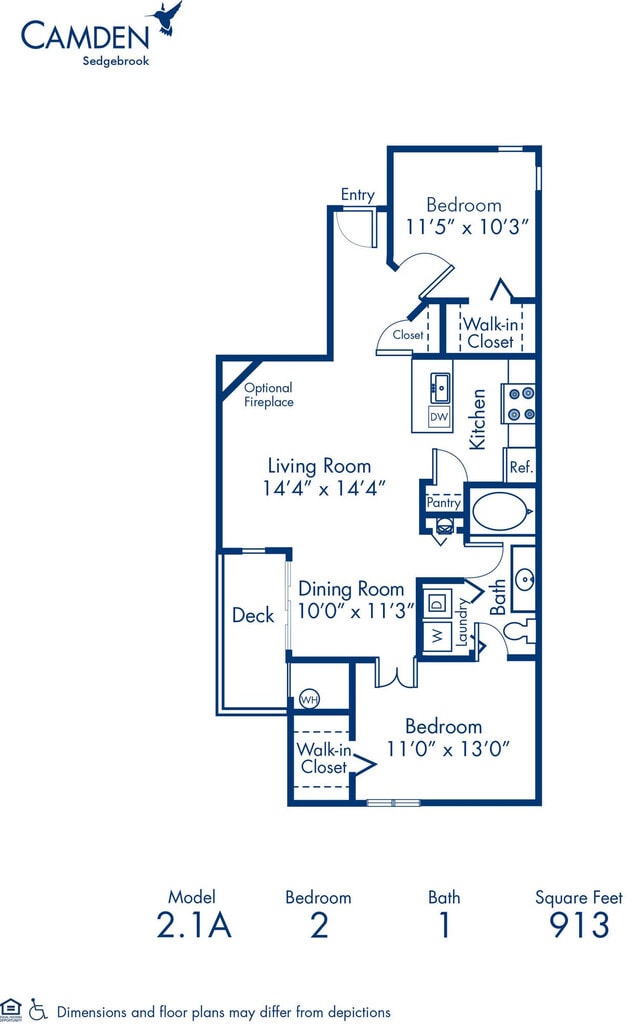 Apartment Model: 2.1A2 Bedroom, 1 Bath, 913 sq ftUnavailable![]()