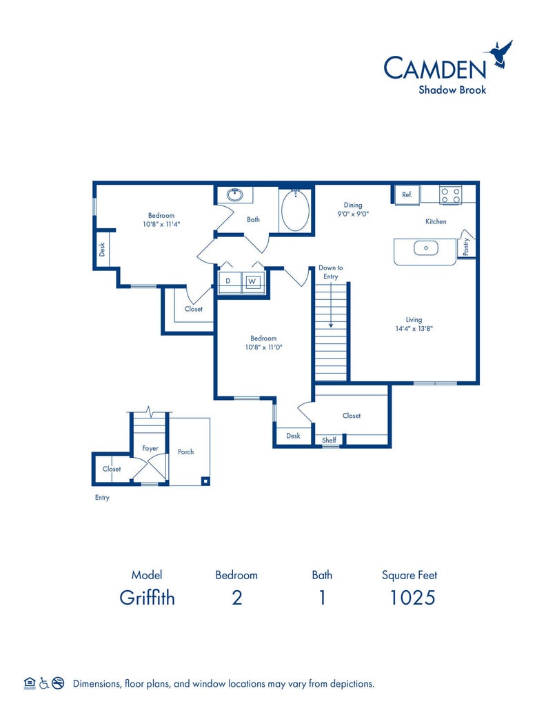 Apartment Model: Griffith2 Bedroom, 1 Bath, 1025 sq ftUnavailable![]()