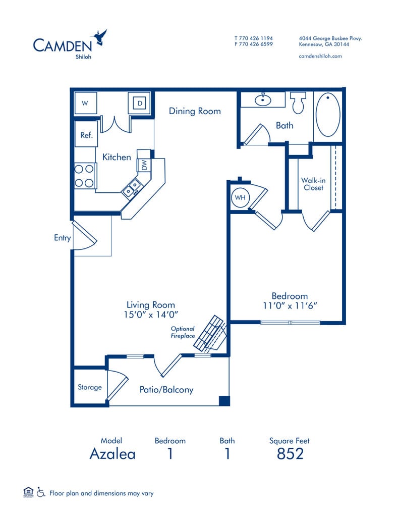 Apartment Model: Azalea1 Bedroom, 1 Bath, 852 sq ftUnavailableAzalea - Floorplan 1 Gardenia